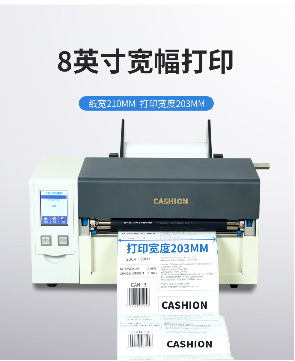 - 自動感測節(jié)省使用耗材的CASHION C-204條碼打印機